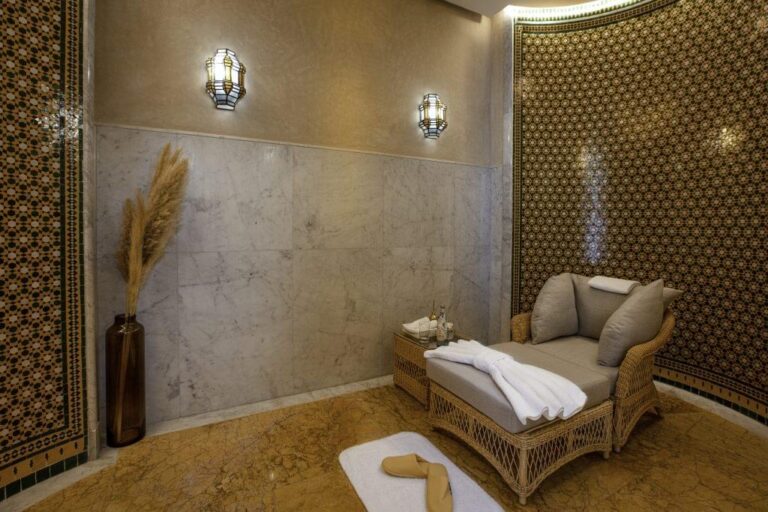Situé à côté des tombeaux Saadiens, en plein cœur de la Médina, le spa du luxueux Riad 5 étoiles Le Sultana est l’un des plus prestigieux de Marrakech. Avec sa piscine en marbre rose, vous serez transporté dans un véritable palais des mille et une nuits. Nous avons testé leur hammam avec gommage, une expérience exceptionnelle, suivie d’un massage que nous recommandons vivement. Le spa est accessible à tous, même si vous n’êtes pas résident de l’hôtel, et est ouvert tous les jours.
